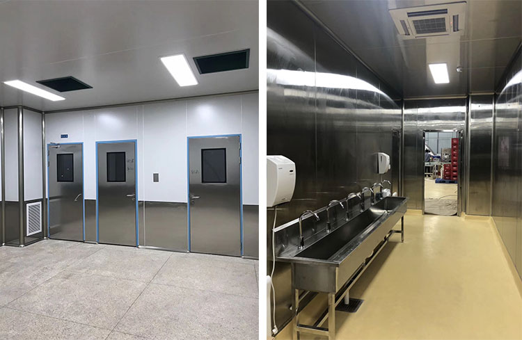 正是安徽綠帝食品有限公司這樣的企業(yè)情懷,遇到了同樣也是以企業(yè)社會責(zé)任感為公司企業(yè)文化的無錫易純凈化設(shè)備有限公司。兩家的深入交流、溝通后,建立了深深的好感和信任!由于安徽綠帝食品有限公司主要生產(chǎn)加工肉制品,無錫易純凈化設(shè)備有限公司為安徽綠帝食品有限公司打造的十萬等級凈化車間主體結(jié)構(gòu)為不銹鋼材質(zhì),因為肉制品生產(chǎn)企業(yè)車間內(nèi)濕度過大,空氣中有鹽分,容易腐蝕普通的彩鋼板,并且使用壽命有限,更容易滋生細(xì)菌,不好維護(hù)保養(yǎng),所以易純凈化采用了304不銹鋼潔凈板材做吊頂和隔斷,更易維護(hù),使用壽命更久,更符合安徽綠帝食品有限公司的生產(chǎn)工藝。