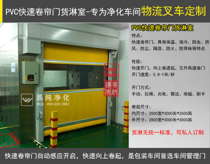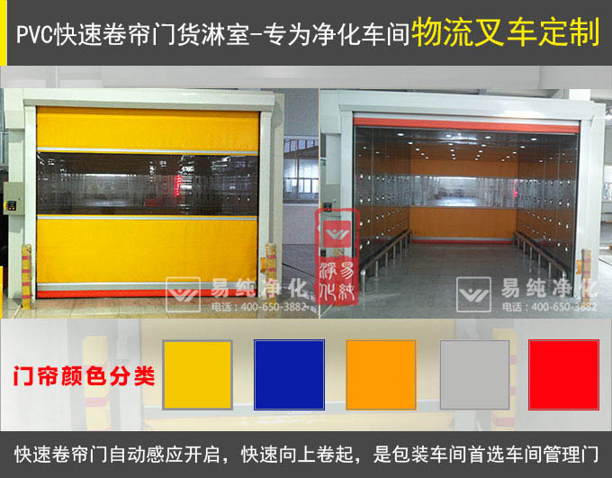 雙門互鎖風(fēng)淋室快速卷簾門,專門為潔凈凈化車間使用,防止室內(nèi)外的空氣相互流通以及除去物體表面的灰塵,避免將污染源帶入到潔凈車間中去??焖匍T為空間狹小的物流通道設(shè)計(jì),內(nèi)置型馬達(dá)不占用安裝空間,滿足特殊場(chǎng)地需要。門簾由較輕的織物及鋁制抗風(fēng)肋條組成,提升速度快、安全可靠,出入方便,防蟲,防塵。