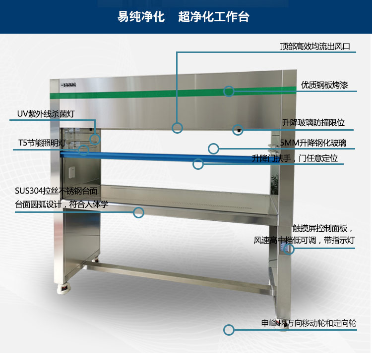 18.電器控制:控制面板上有紫外線殺菌燈,照燈,風(fēng)機(jī)調(diào)速控制軟觸點(diǎn)開關(guān);