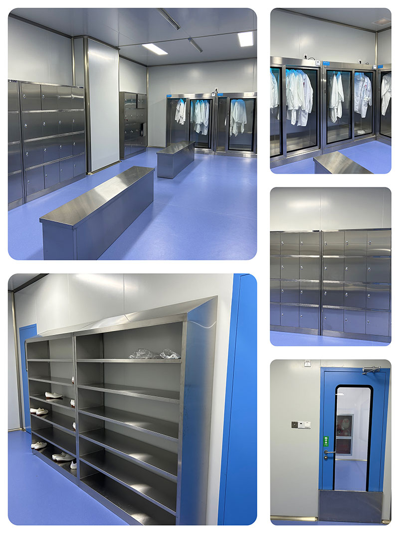更衣室入口設(shè)置門禁和擋鼠板,內(nèi)部不銹鋼鞋柜和衣柜,二更內(nèi)配紫外線消毒衣柜